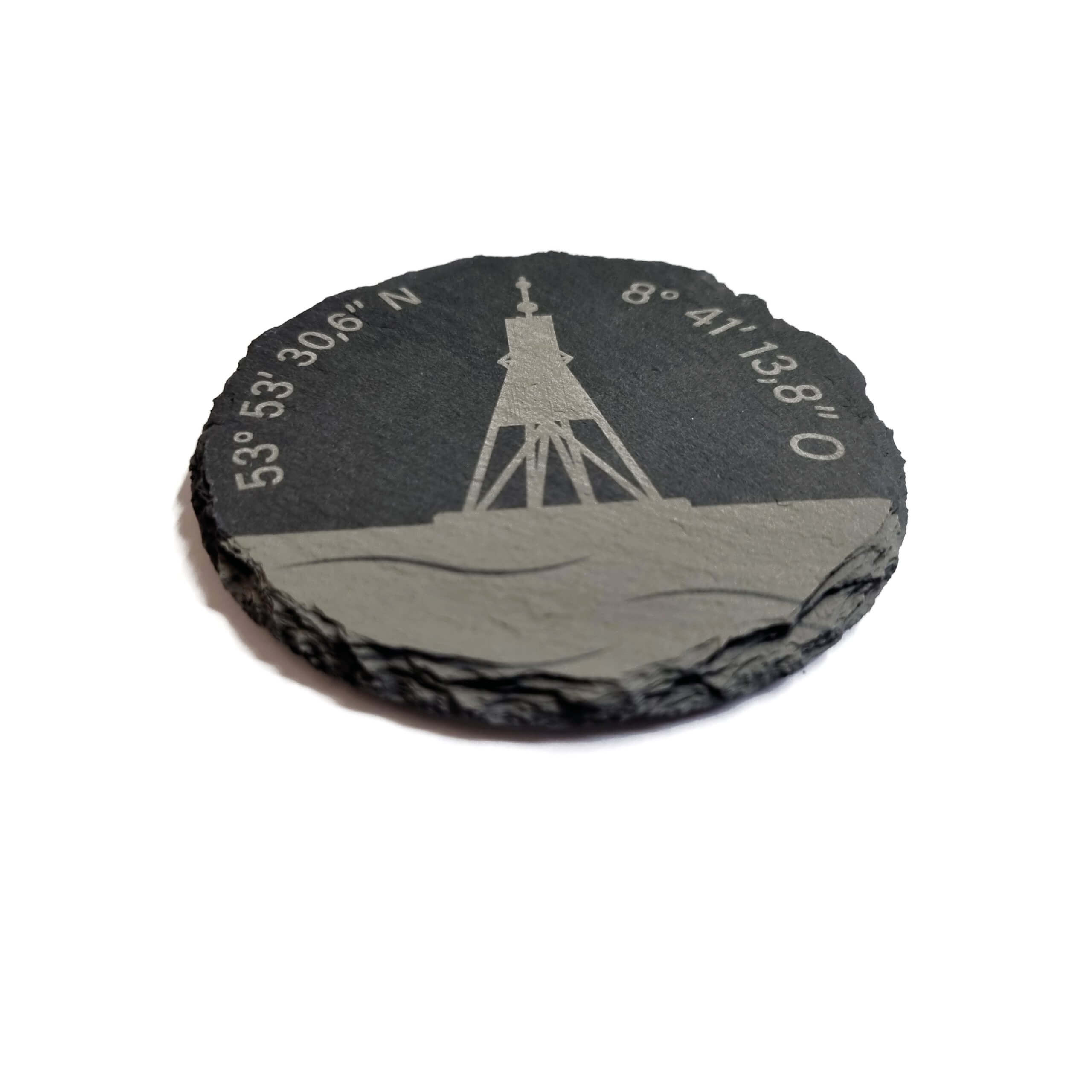 Untersetzer aus gravierter Schieferplatte mit Cuxhavenmotiv.